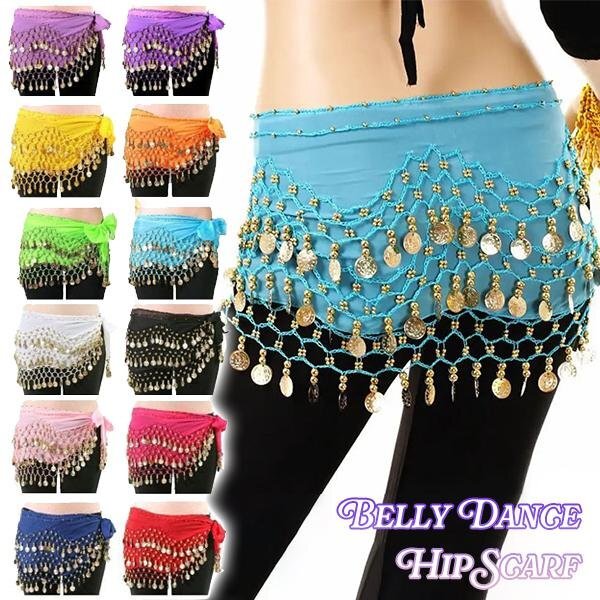 - 送料無料 ベリーダンス ヒップスカーフ 選べるコイン&カラー ベリーダンス衣装 128枚 コイン シフォン素材3段コインヒップスカーフ