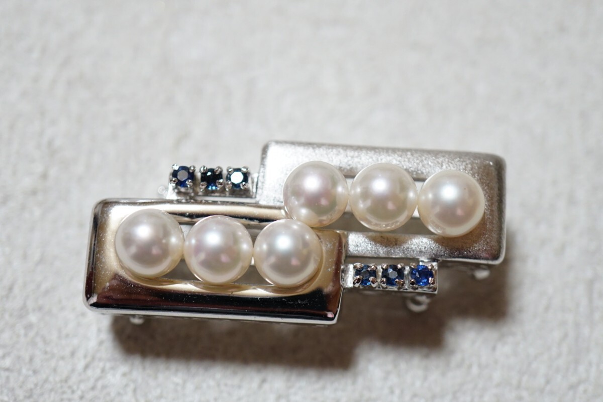 > 123 アコヤ真珠 天然サファイア 本真珠 パール ブローチ 帯留め オビドメ ヴィンテージ アクセサリー SILVER刻印 冠婚葬祭 和装小物 着物