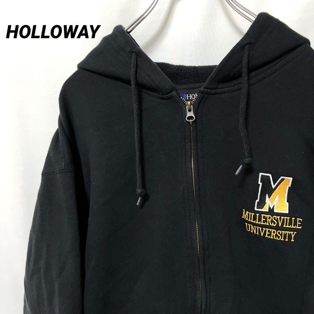 - N-5755 HOLLOWAY ホロウェイ アメリカ古着 カレッジロゴ 刺繍 スウェット パーカー フルジップ ジップアップ L メンズ