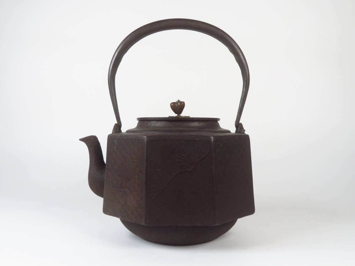 - 旧家整理品 祥雲堂造 銅蓋 波千鳥図八角鉄瓶 細密彫刻 急須 湯沸 水注 茶道具 骨董品 古美術品 高さ27cm【101③】