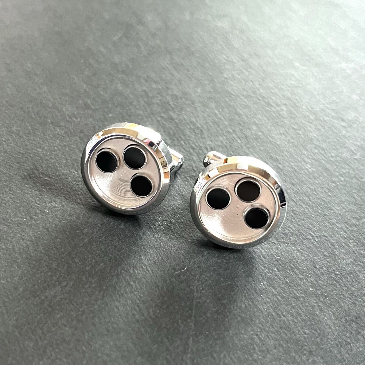 - カフスボタン 丸型 ブラック 結婚式 ビジネス フォーマル カフリンクス スーツ 2個 カフス シルバーカラー