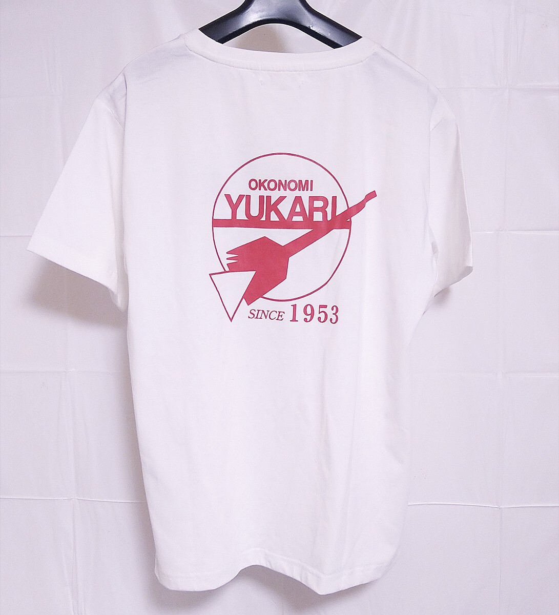 - お好み焼きゆかり バックプリント Tシャツ ホワイト レディース LLサイズ