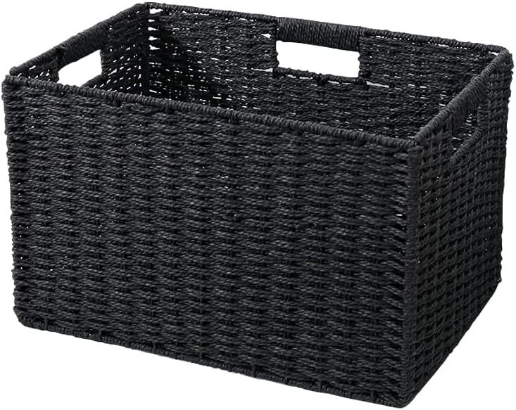 - 収納バスケット 折り畳み式 手編み 幅38×奥行26×高さ24cm