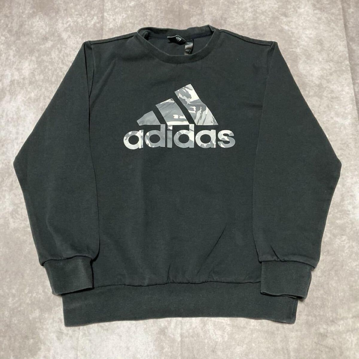- アディダス adidas トレーナー スウェット トップス ビッグロゴ パフォーマンスロゴ カモフラ カモフラージュ 長袖 黒 ブラック M