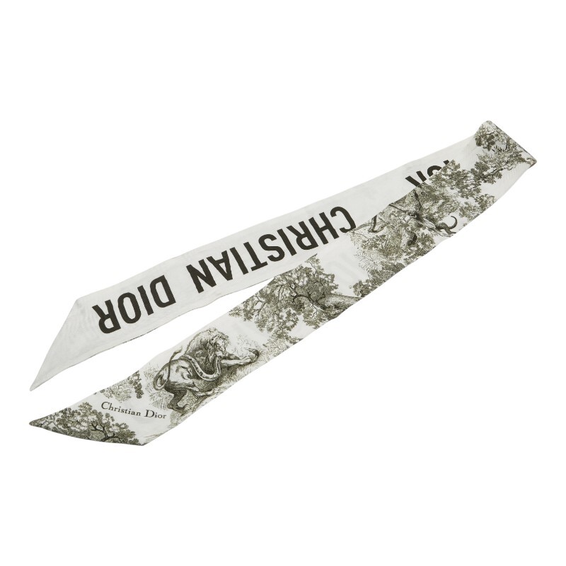 - ディオール ミッツァ トワル ドゥ ジュイ スカーフ ホワイト カーキ シルク レディース Dior 【中古】