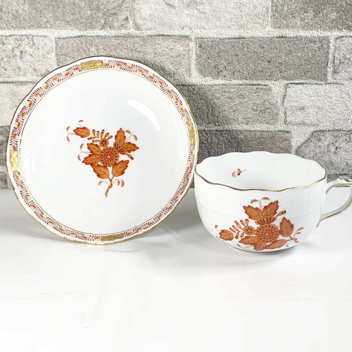- usH-3299【Herend ヘレンド】アポニーオレンジ カップ&ソーサー 食器 保管品 現状品