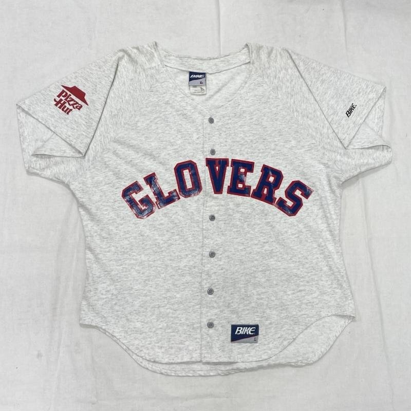 - 古着 BIKE オールド USA製 ゲームシャツ ユニフォーム 両面 ラバー プリント ポリエステル混 コットン L