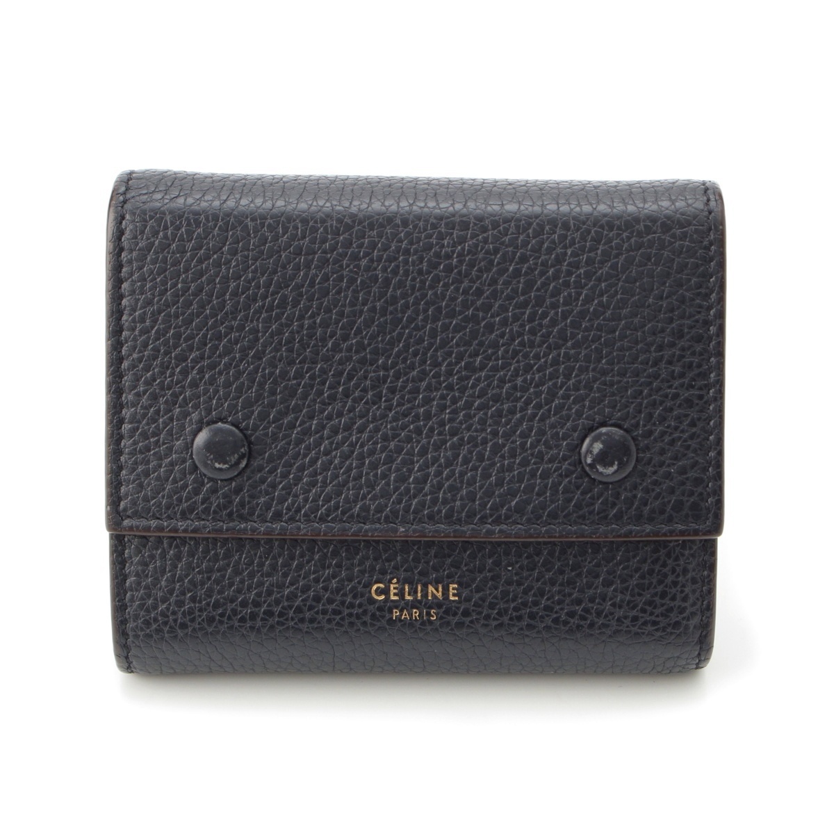 - セリーヌ レザー ロゴ コンパクトウォレット 三つ折り財布 ネイビー【中古】