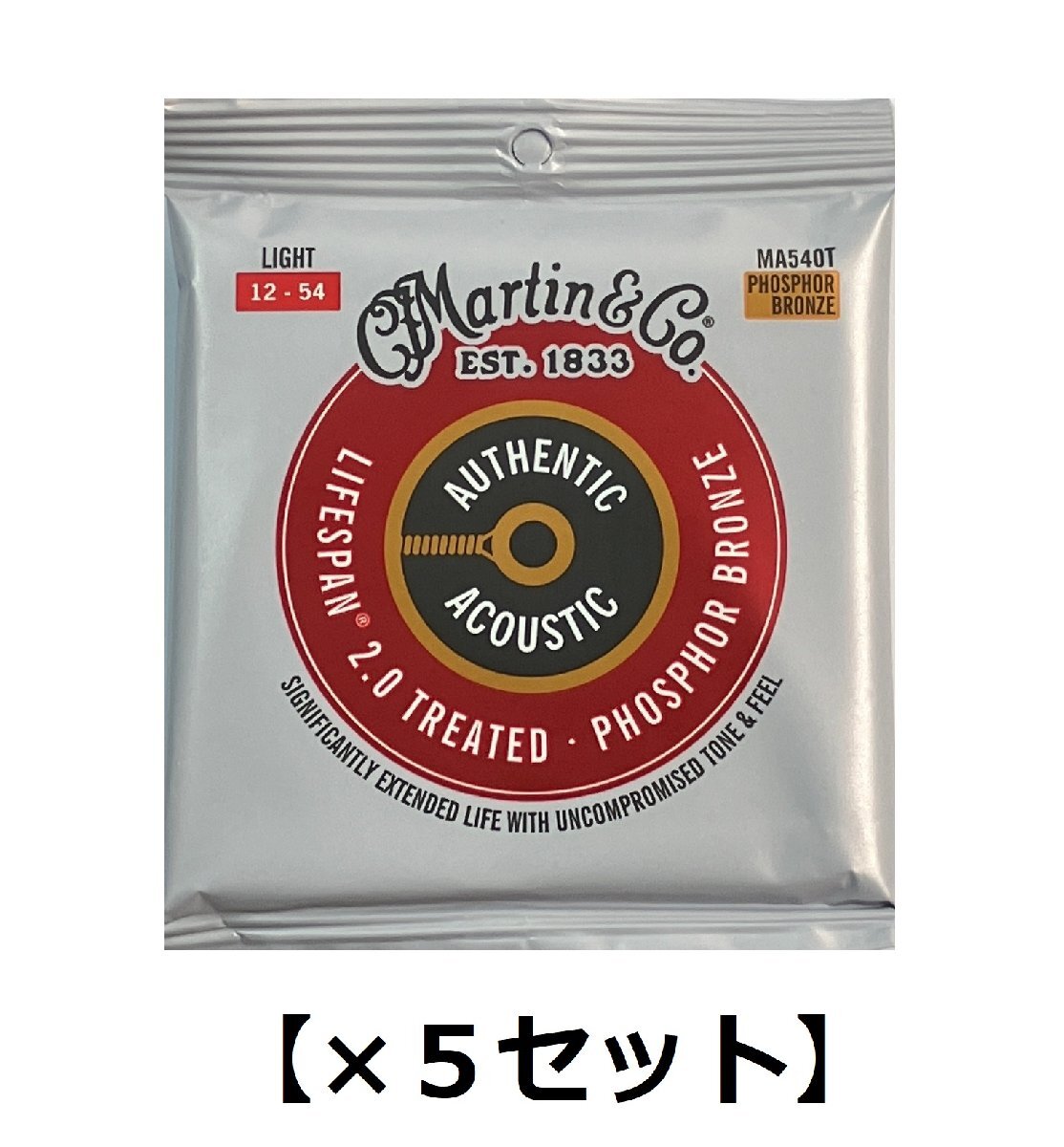 - [5セット] MARTIN MA540T [12-54] ×5 AUTHENTIC ACOUSTIC LIFESPAN 2.0/Light マーチン ライトゲージ アコギ弦