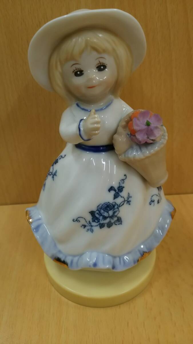 - 【菊水-605】ドマン/Domain/花束を持った女の子/陶器製オルゴール(やさしさに包まれたなら)(yu)