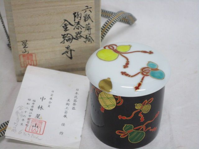 > 雉坂★【 六瓢蒔絵 陶漆器 金輪寺 中林星山 共箱 蓋:玉泉 】茶道具・薄茶器・棗・替茶器・蓑輪一星に師事・日芸展会員