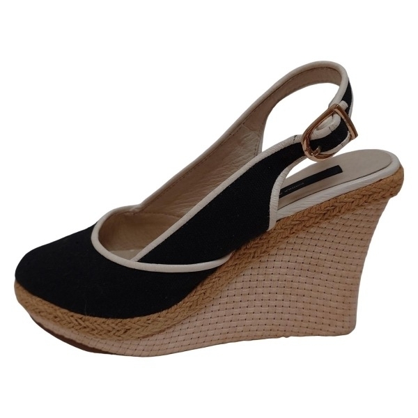 > ダブルスタンダードクロージング DOUBLE STANDARD CLOTHING サンダル 35 1/2 - コットン、レザー 黒×ベージュ レディース ウェッジソール