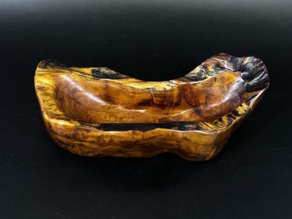- sa☆/ 希少 天然木 刳り貫き 無垢材 飾り台 小物入れ 全長25㎝ 器 トレー * 玉杢 蟹杢 金襴杢 縮杢 /DY-4997 TM