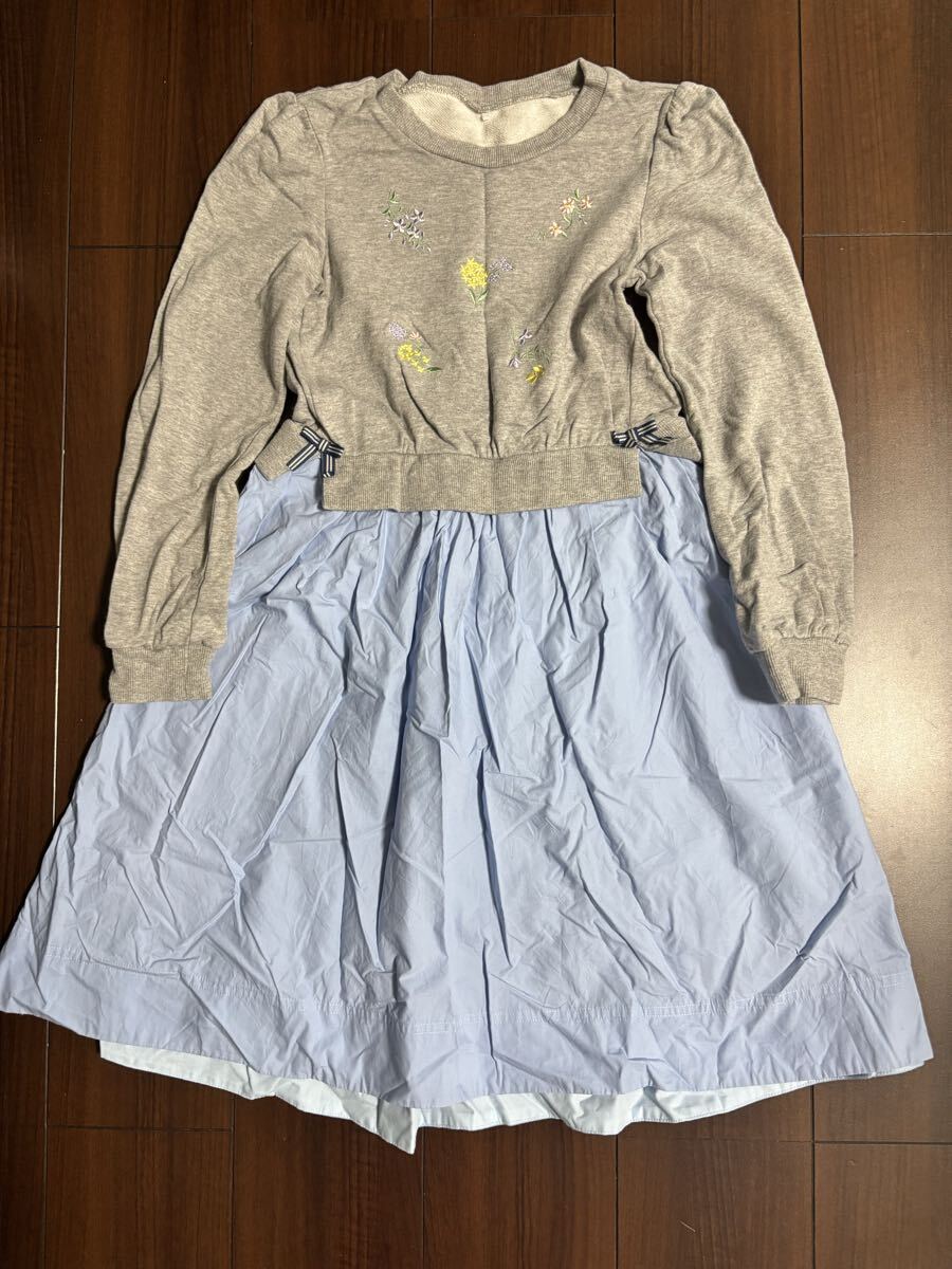 - 組曲 キッズ トレーナー ワンピース 150㎝ グレー×水色 女の子