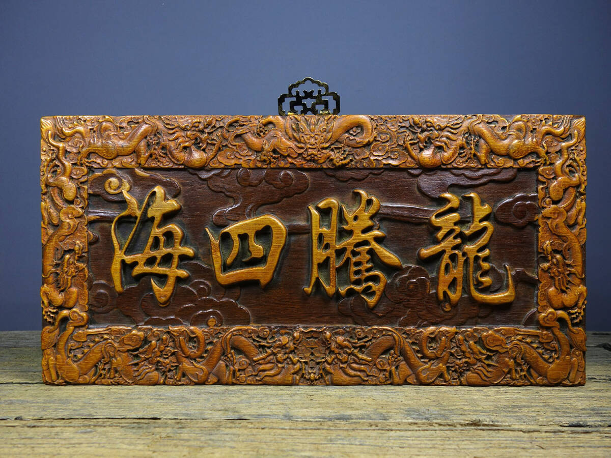 - 【蔵友館蔵品・竹黄製・細密彫・龍騰四海・掛額・置物・文房賞物】・古董品・中国古玩・時代物・希少珍品・中国時代美術