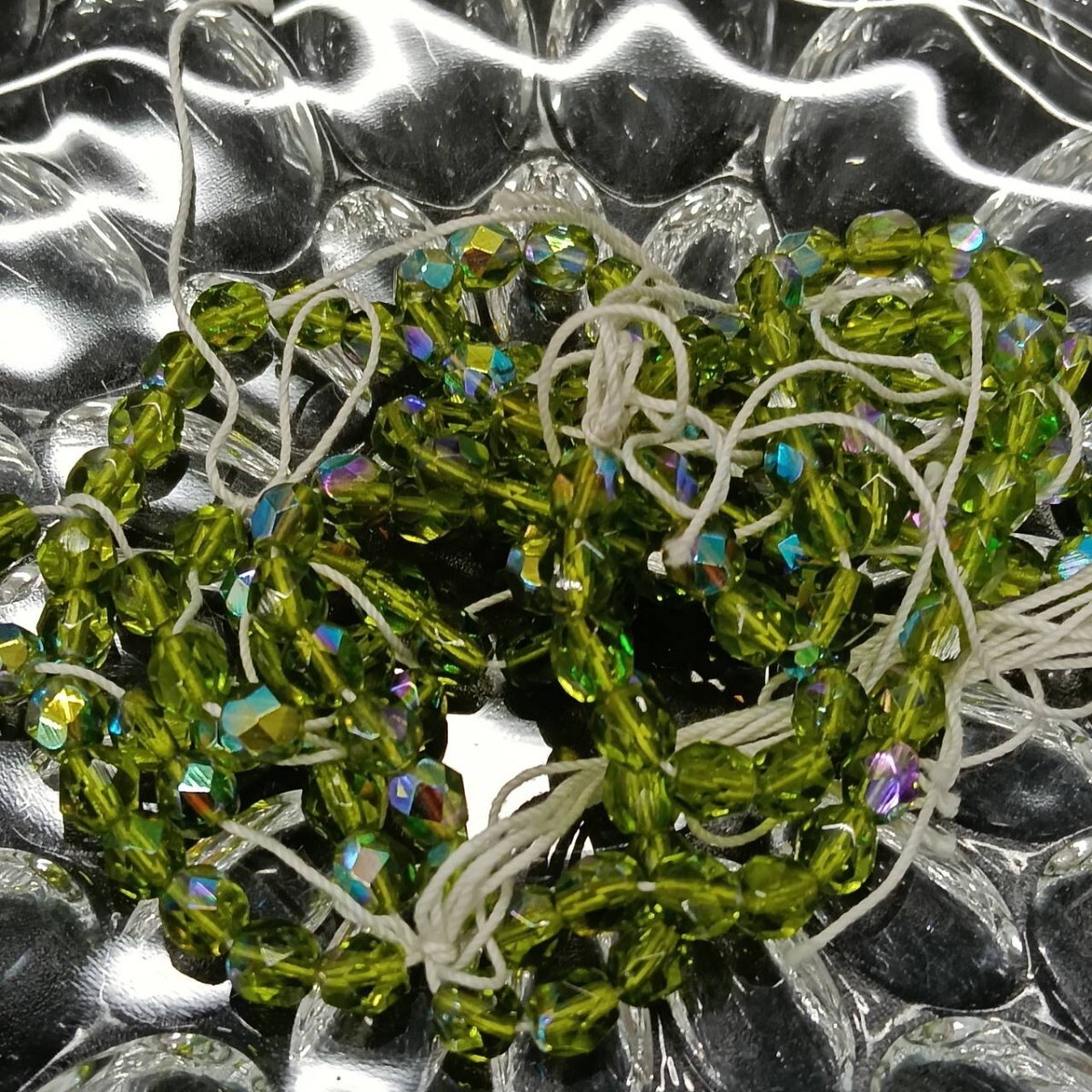 > L476 ☆未使用 大量 チェコ ファイアポリッシュ ガラスビーズ 34g 6×5mm チェコカット ラウンド グリーン 緑 大粒 ヴィンテージ B-510