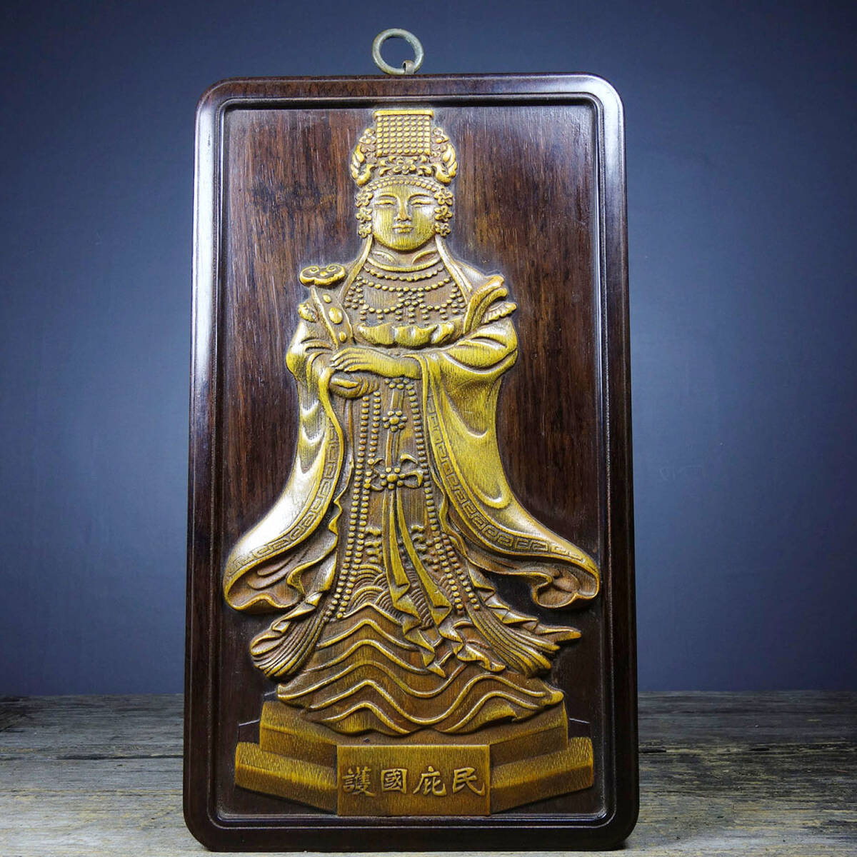 - 【蔵友館蔵品・檀木製・竹黄製・細密彫・如意菩薩・掛額・置物・文房賞物】・古董品・中国古玩・時代物・希少珍品・中国時代美術