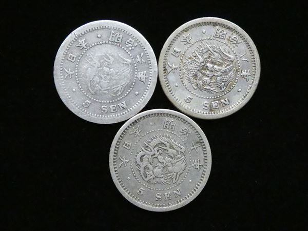 - ◆◇近代貨幣 竜5銭 銀貨 明治6年(1873年) 明治8年(1875年) 明治10年(1877年) 計3点◇◆