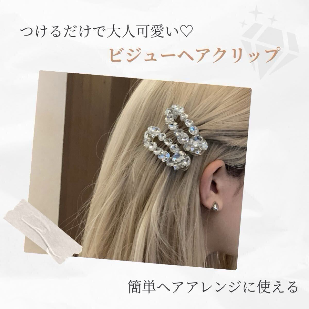 > ヘアピン ビジュー ラインストーン サイドクリップ 髪飾り キラキラ 2個セット 上品 大ぶり ヘアアクセサリー クリア ヘアアレンジ 韓国