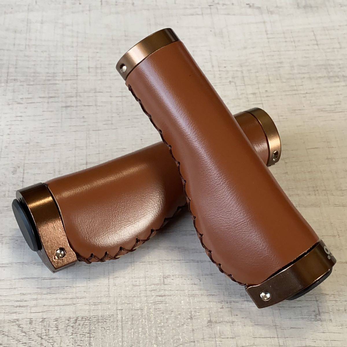 - 自転車グリップ ロックオン ハンドルグリップ エルゴグリップ レザー調 ブラウン 茶色