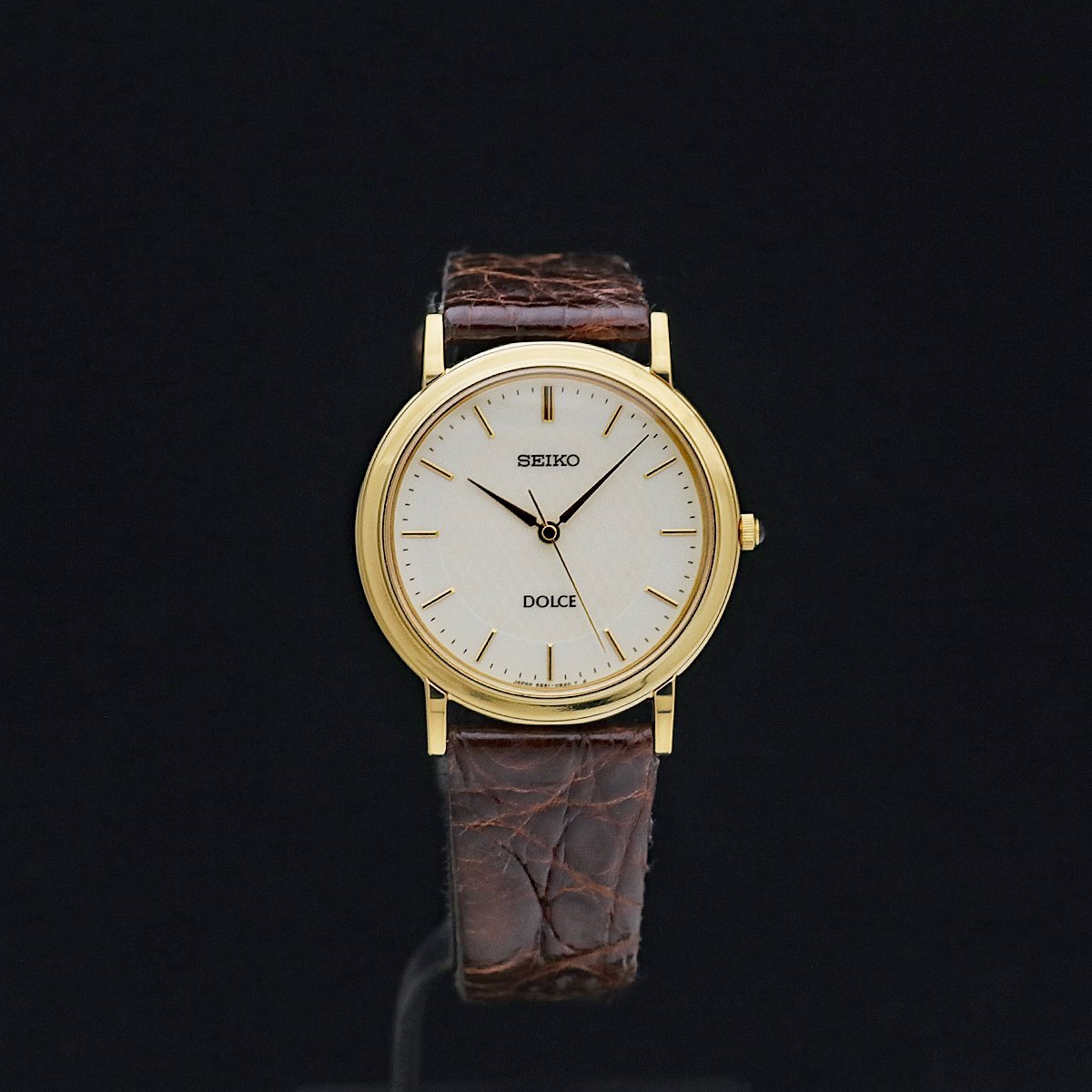 > 1円~ 美品 電池交換済 SEIKO セイコー ドルチェ SADV062 5E61-0A80 GP・SS メンズ 年差クォーツ アイボリー文字盤 定価6万