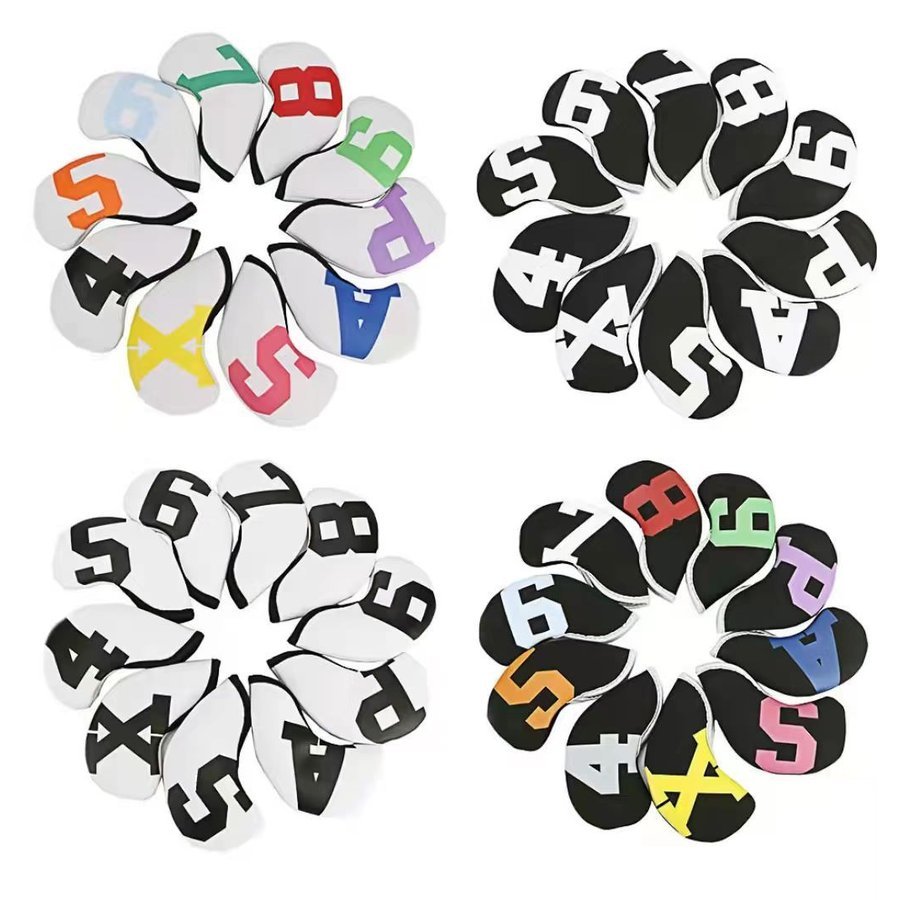 - ゴルフヘッドカバー アイアンカバー アイアン用 10点セット 4番 5番 6番 7番 8番 9番 P番 A番 S番 X番 番手付 ネオプレーン 多彩