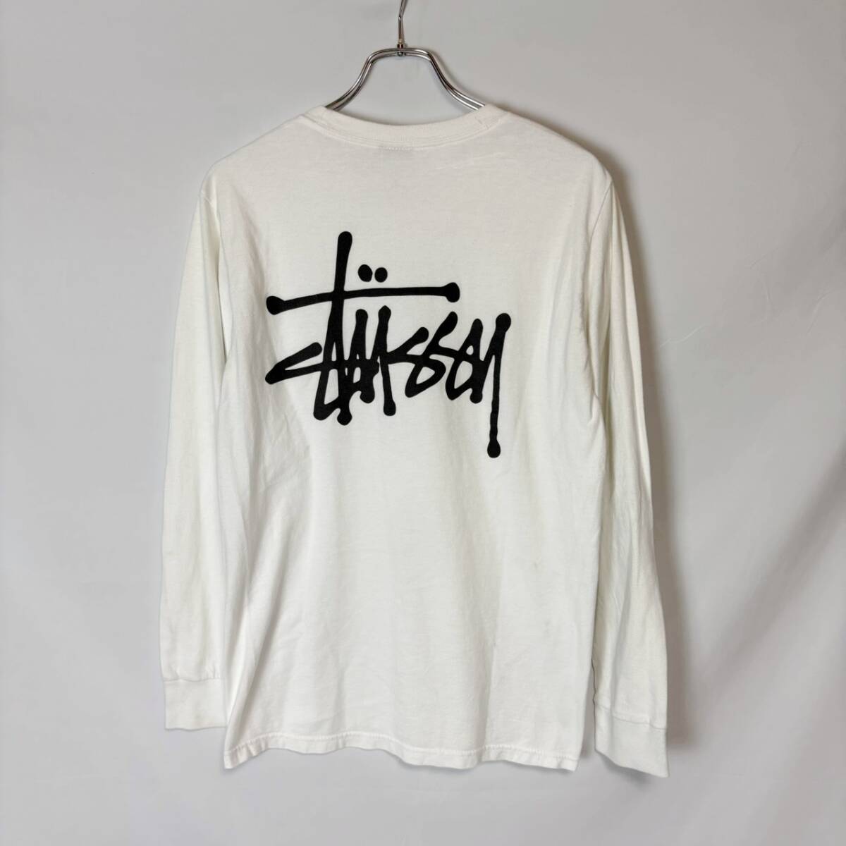 - メキシコ製 STUSSY ステューシー ショーンフォントロゴ 両面プリント ロングTシャツ ロンT 長袖 ホワイト系 S