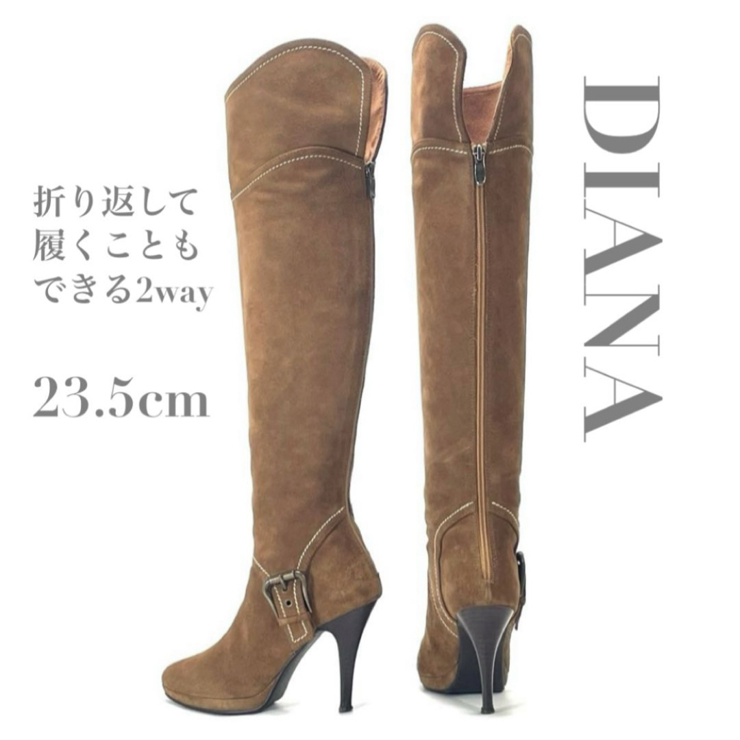 - DIANA ダイアナ 2way ニーハイ ロングブーツ キャメル スエード ハイヒール 23.5cm レディース 美脚効果 ベルト バックファスナー