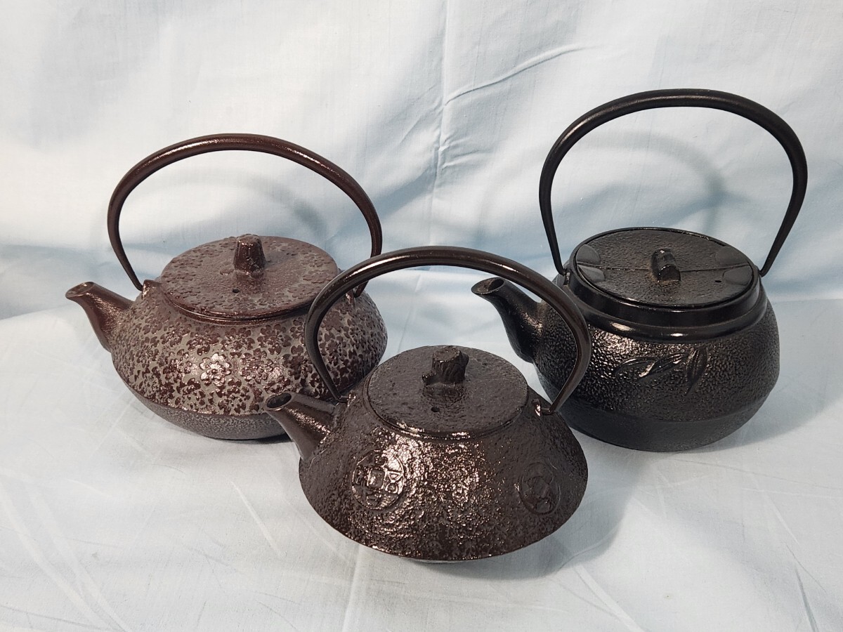 - 南部油永 南部文秀堂 ○久 鉄瓶 急須 南部鉄器 美品 茶器 茶道具 金属工芸 3点