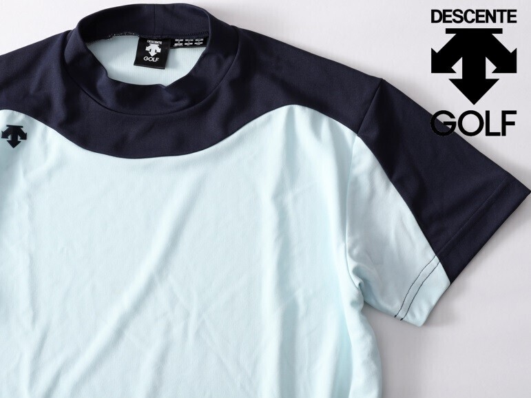 > ★中古品★DESCENTE GOLF デサントゴルフ★バイカラーメンズ半袖Tシャツ★L【DGMRJA28】サックス水色【本物保証】難有★店頭完売品