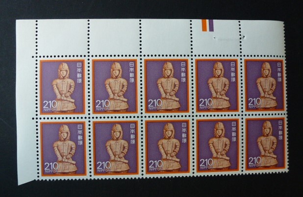 - 大蔵銘より 210円 はにわ カラマーク上 10枚ブロック 未使用 完美品 A-450-8s