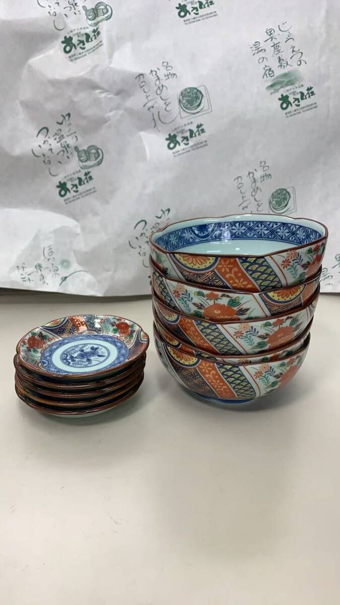 - S1-8-4→Aランク 有田焼 聖山窯 中鉢揃 5客組+小皿5客組 金彩 牡丹 菱紋 青海波 煮物碗 アリタヤキ 希少