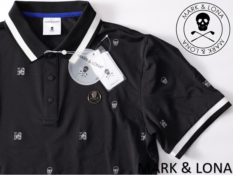 > ★韓国限定モデル★MARK&LONA マーク&ロナ★メンズアイアンスカルGOLFロゴ刺繍半袖ポロシャツ★L【MLM-3B-AP78】ブラック黒【本物保証】
