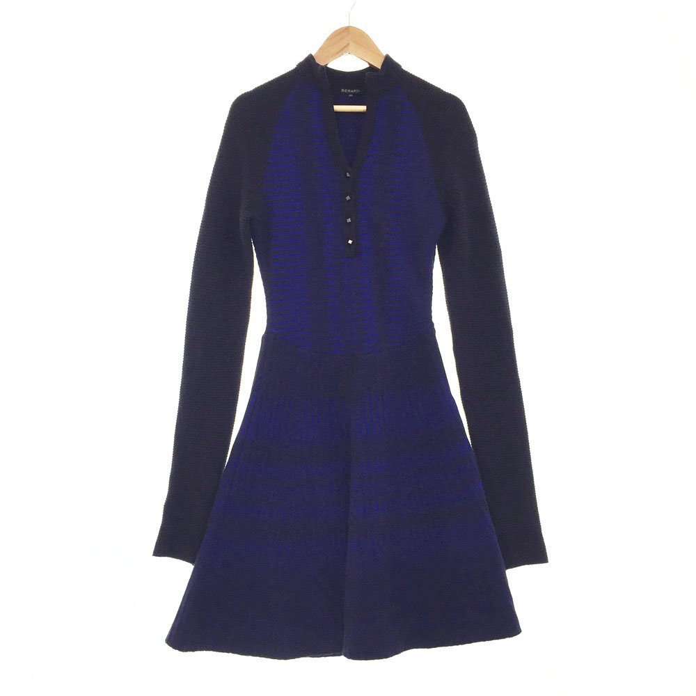 - ★美品 BERARDI ベラルディ 長袖 ジャージーニットワンピース サイズ00 レディース ダークグレー×ブルー フレアシルエット 1BB/93895