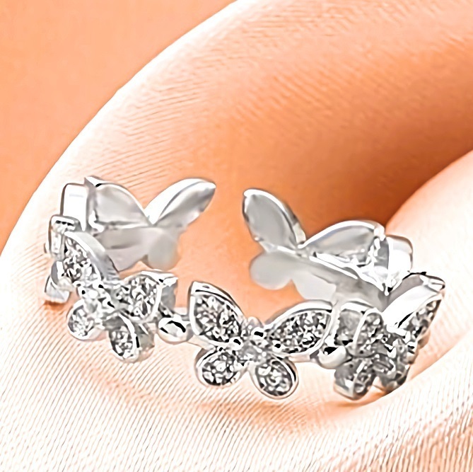 - 新品★送料無料★エタニティ七色ダイヤ蝶々舞 フリーサイズ プラチナ仕上925シルバーリング誕生日プレゼント旅行春連休ギフト国内発送