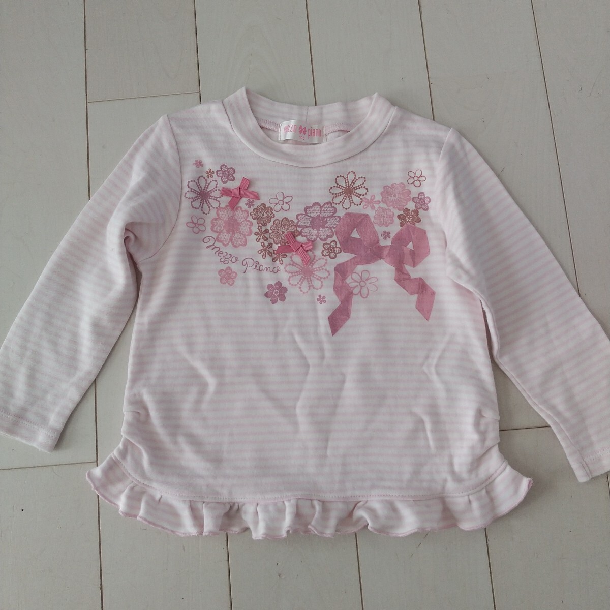 - 100 メゾピアノ リボン花 ボーダー 長袖Tシャツ