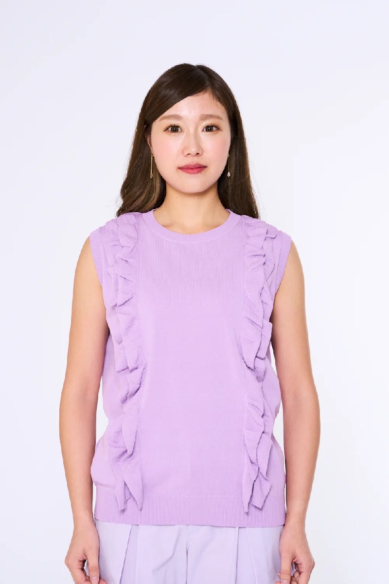 - MU スポーツ 701H3208 パープル サイズ42 フリル付きクルーネックニットベスト 定価28,600円 ミエコウエサコ 新品 レディス