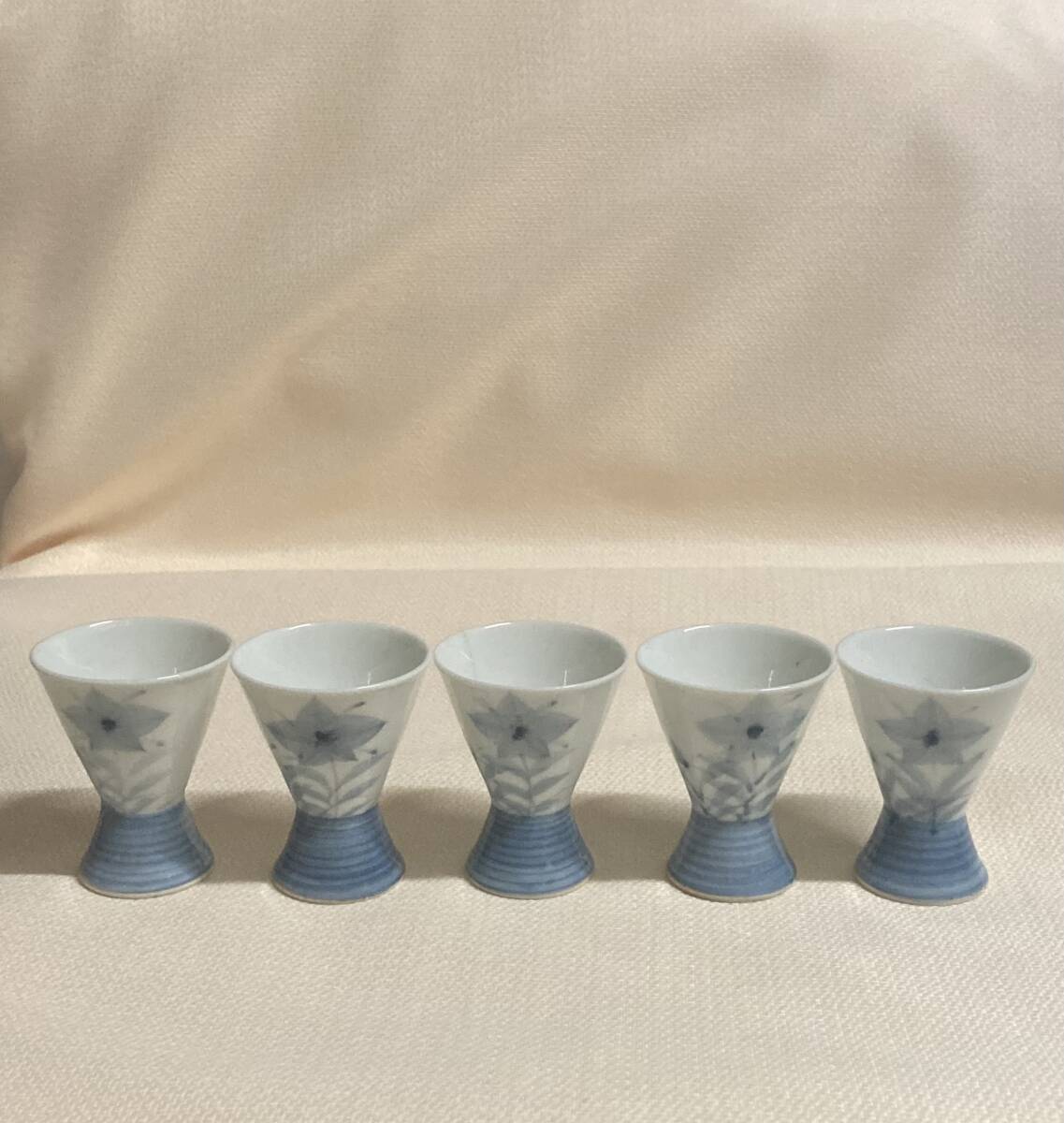 - 【送料込】古い酒器5点 桔梗柄 お猪口 盃