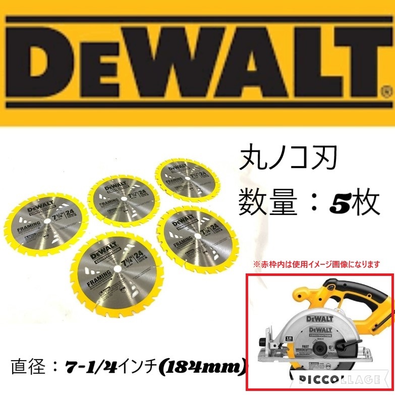- 【米軍放出品】未使用品 丸ノコ刃 5枚 7-1/4インチ(184mm) 24T 木材用 フレーミング用 DeWALT DW3178 電動工具 (60) HJ1UK#25