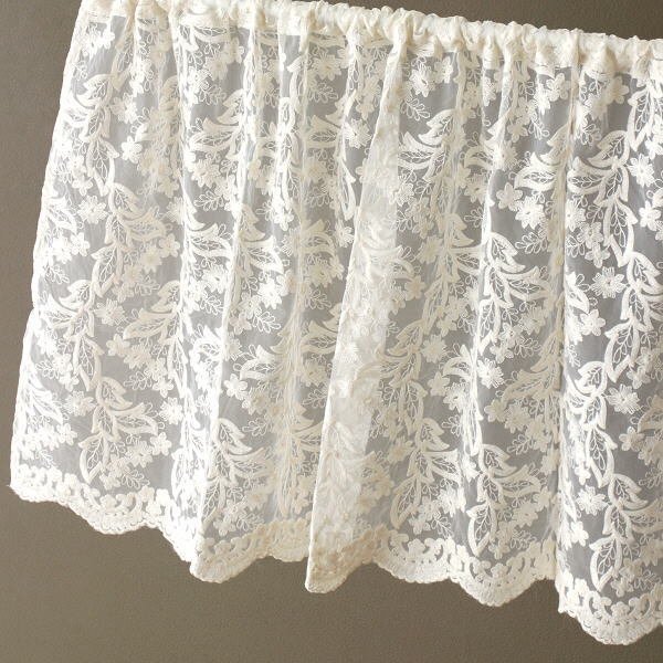 - カフェカーテン おしゃれ かわいい レース レースカーテン 60cm 花 刺繍 チュール カフェカーテン 5048L60 送料無料(一部地域除く) won7059