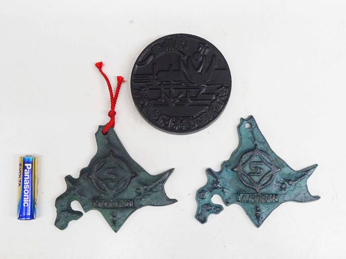 - ◆(EG) 鉄製 文鎮 3点セット 鉄器 金属工芸 重り 重し ペーパーウェイト 北海道 HOKKAIDO 室蘭市 企業物 記念品 ノベルティ 書道具 文房具