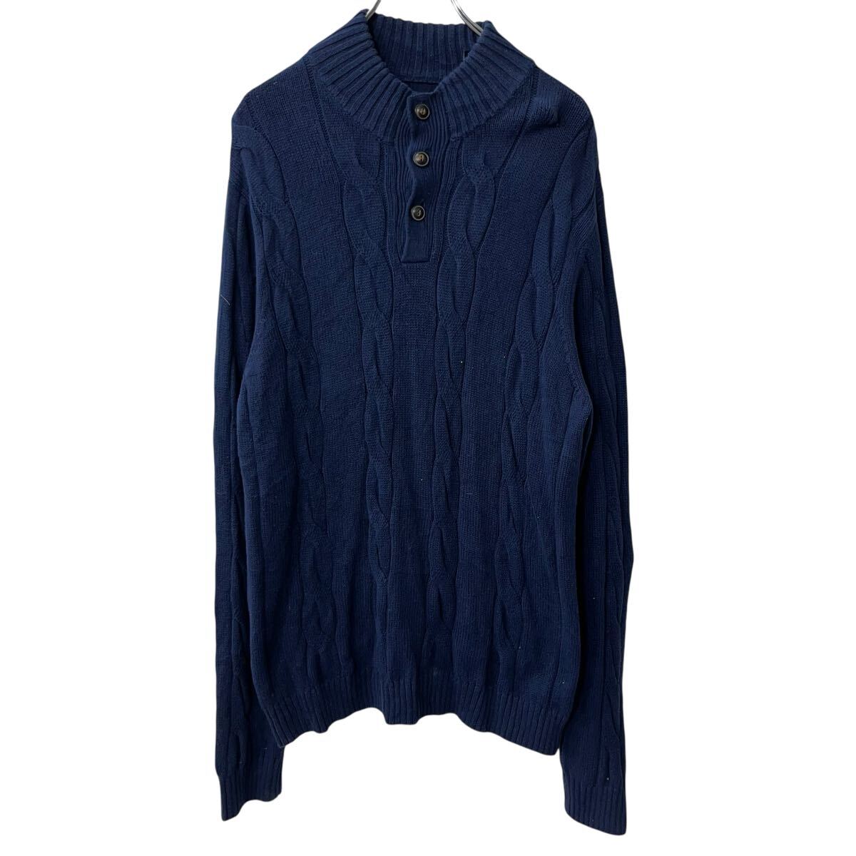 - a710-5185 CHAPS コットンニット セーター L ネイビー チャップス コットン100% ケーブルニット ハーフボタン シンプル 秋物