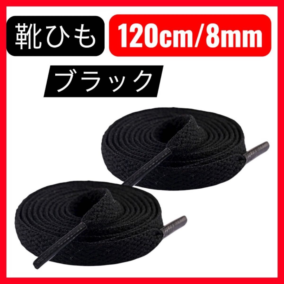 - ブラック 靴紐 平紐 120cm 2本1セット 無地 シューレース スニーカー シューズ紐 ブラック 靴ひも 黒 シンプル
