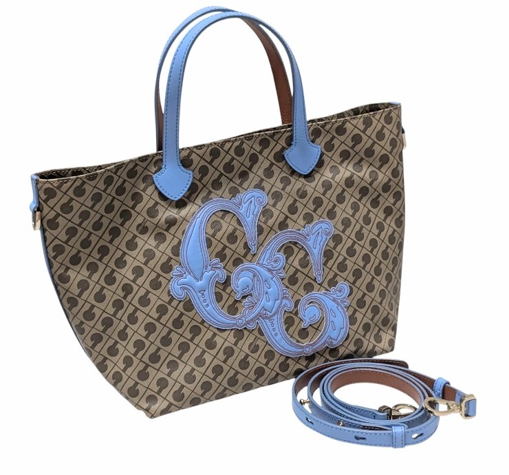 - ゲラルディーニ トートバッグ 総柄 ハンドバッグ ショルダーバッグ ブラウン 水色 レディース GHERARDINI 【中古】