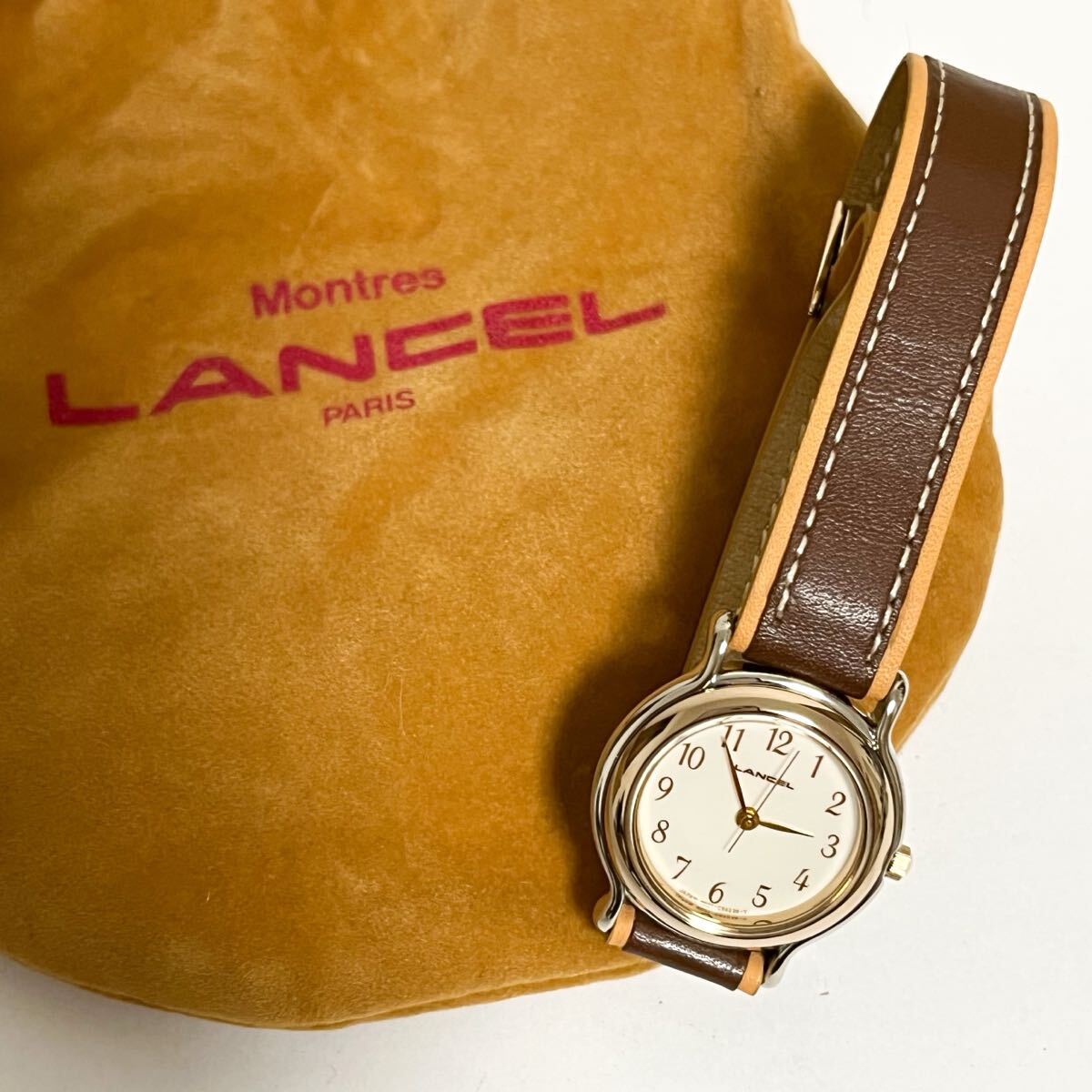 > 和851A★ LANCEL ランセル クォーツ 腕時計 ウォッチ 3針 ホワイト ブラウン レディース 6031-G11009