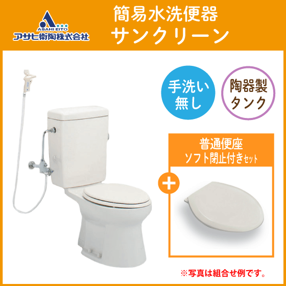 - 簡易水洗便器 簡易水洗トイレ サンクリーン(手洗なし) 普通便座セット AF400LR001 アサヒ衛陶