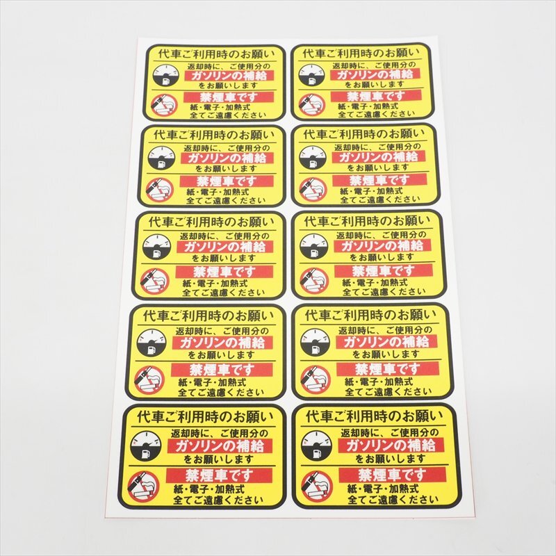 - 代車 レンタカー 給油お願い 電子も加熱式も禁煙ステッカー 10枚セット 8cm 禁煙 業者向け 夏の車内でも長期使用