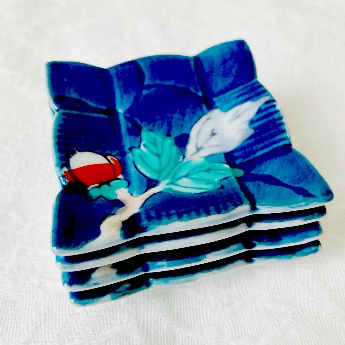 - m49)翠 角形 豆皿 ミニ皿 4枚セット 珍味 薬味 和菓子 箸置き 昭和 レトロ ビンテージ 食器