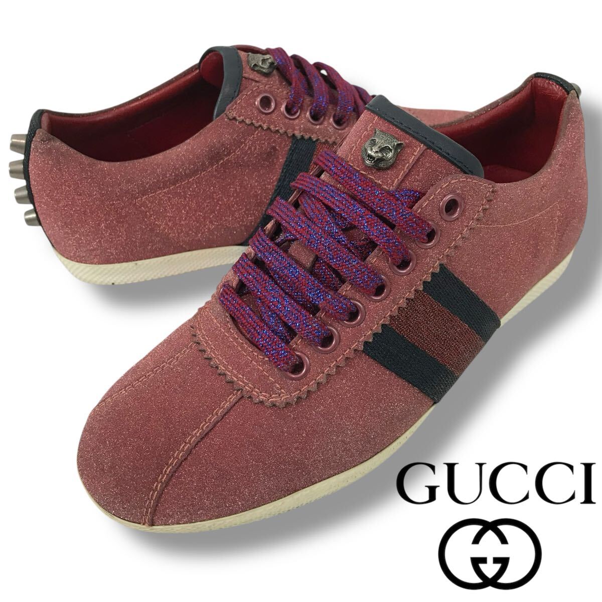 > d10 良品 GUCCI グッチ スニーカー ACE エース シェリーライン ローカット シューズ ラメ 35.5 イタリア製 420093 正規品 レディース
