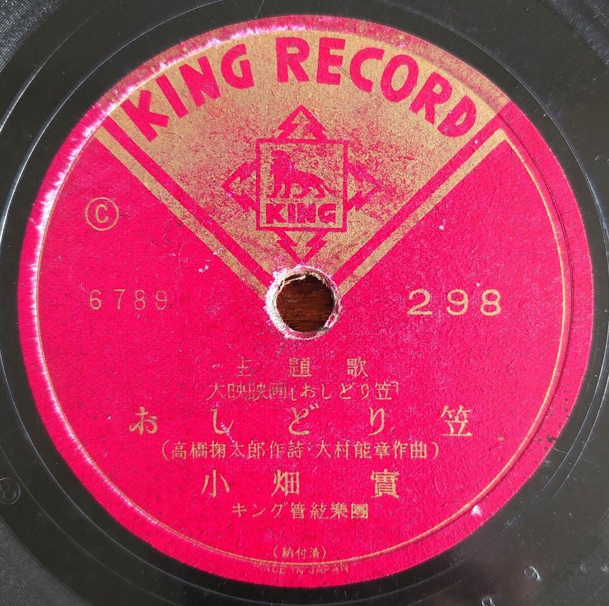 - 【SP盤レコード】KING RECORD C298/大映映画「おしどり笠」主題歌/同題 小畑實/浮名道中 宮城しのぶ